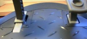 To mark the cut for the brake pedal slot, put the pedal in the top half of the base so that it comes through the hole and rests against the bottom of the top. Mark either side with a razor blade, or sharp knife. Cut the slot to 26mm and adjust to length with a small file.